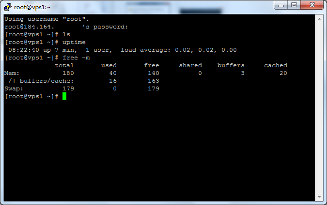 类型的区别基本在于内存、流量、硬盘。我们选最低款的180MB(180内存+180Swap),足够一般的各种应用(我的两个博客、一个svn代码服务器,一个V~P~~N,大概总占用130MB左右,还剩余50内存+180的swap)。