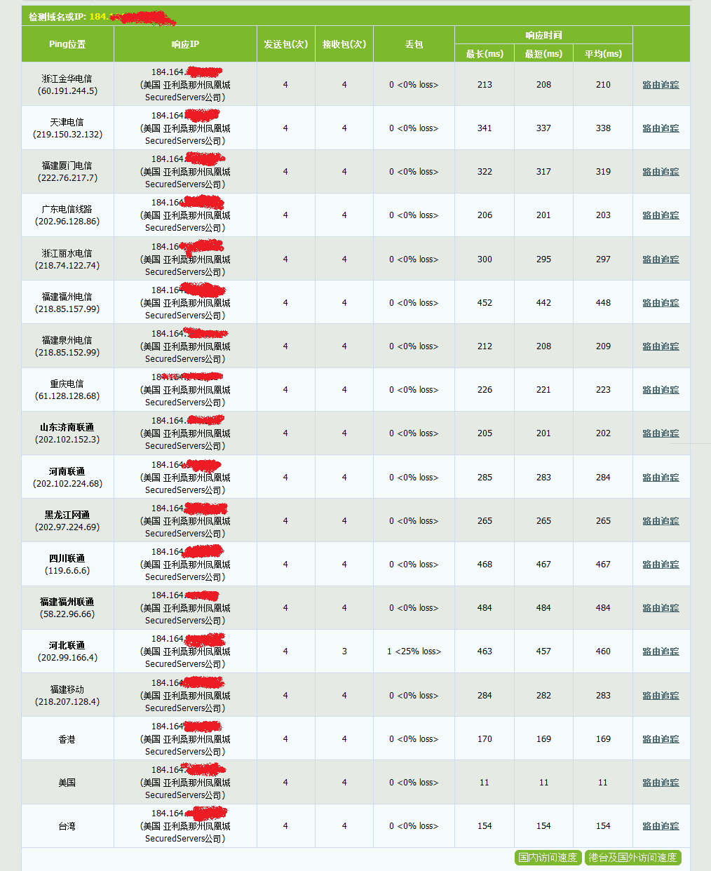 为了给大家测试速度,亲自购买了一个,给大家演示速度,IP就不公布了,看看ping,无丢包是关键的,ping值是次要的。