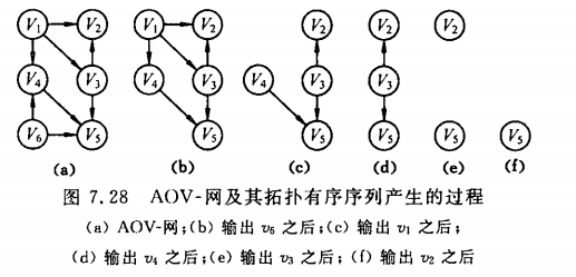 2、从图中删除该顶点和所有以它为尾的弧(此时可能会产生新的无前驱顶点)。
