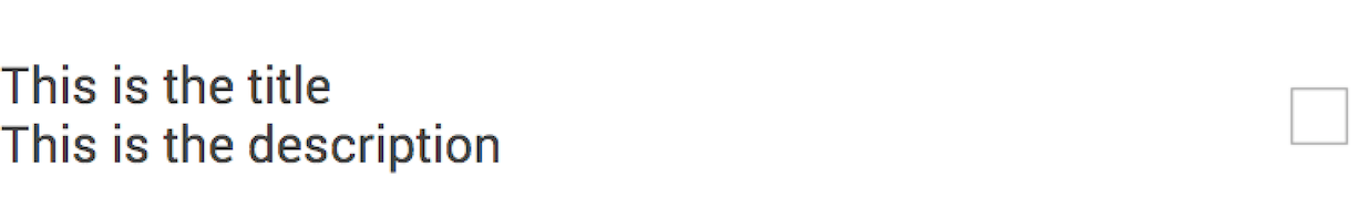 In this example, we need to make a CheckBox with the following requirements: * Two lines of text: a title and a description * The “box” itself aligns to the right side of the View * Tapping anywhere in the View will toggle the state of the CheckBox