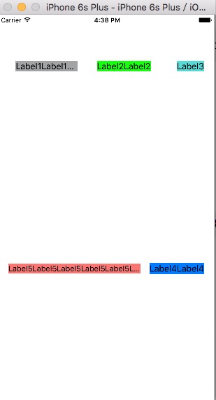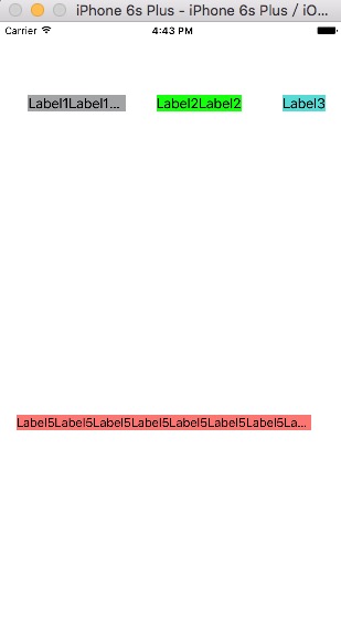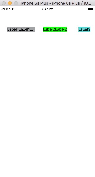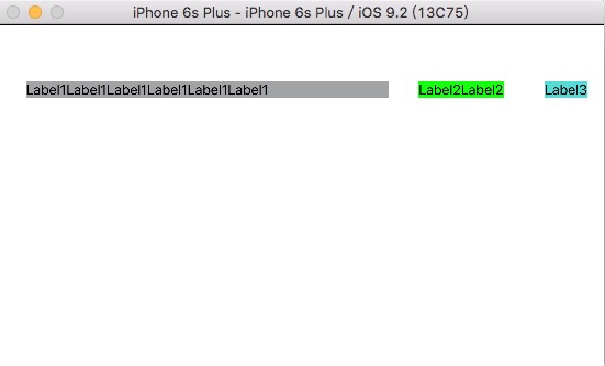 1、水平放置三个Label,彼此间有间距。第一个Label会根据屏幕宽度的不同自动拉伸,另外两个不受影响。
