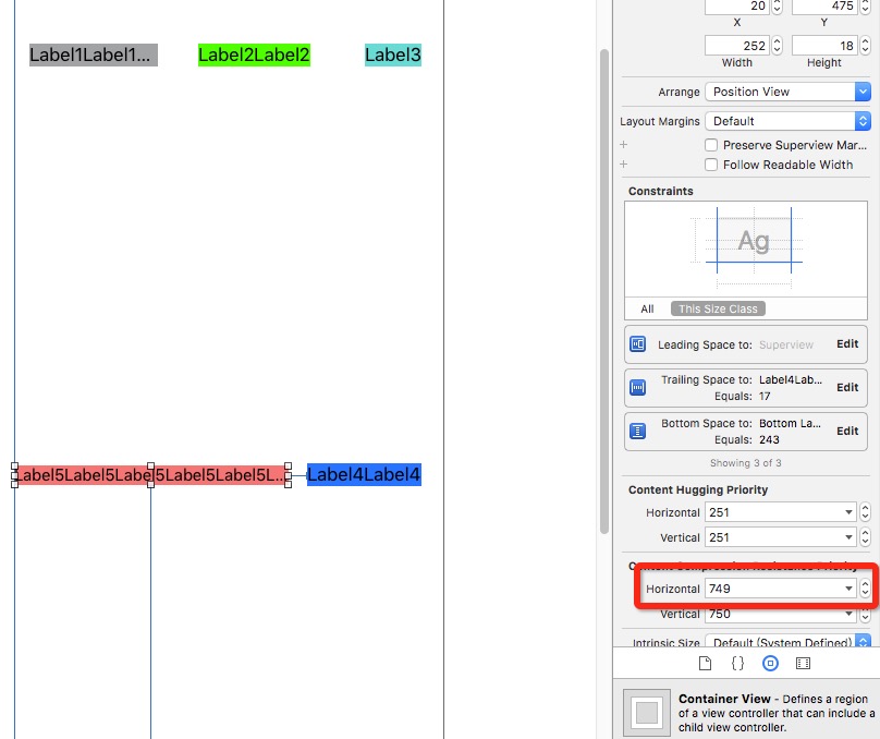 首先在Storyboard里面拉一个UILabel,可以看到默认的Hugging优先级是251,Compression优先级是750。并且提供了水平和垂直两个方向的设置