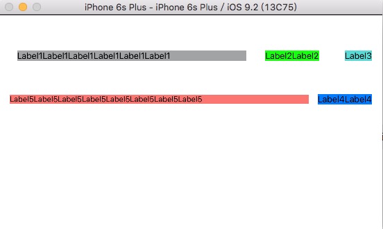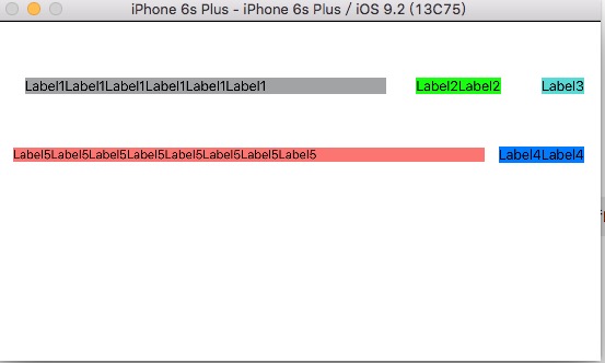 2、水平放置两个Label,第一个Label的Compression优先级比第二个低。