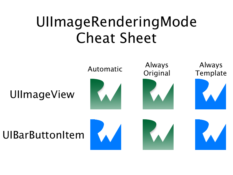 UIImageRenderingModeAlwaysTemplate, // Always draw the image as a template image, ignoring its color information } NS_ENUM_AVAILABLE_IOS(7_0);
