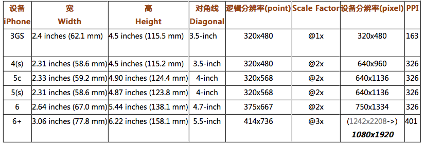 1. iPhone尺寸规格