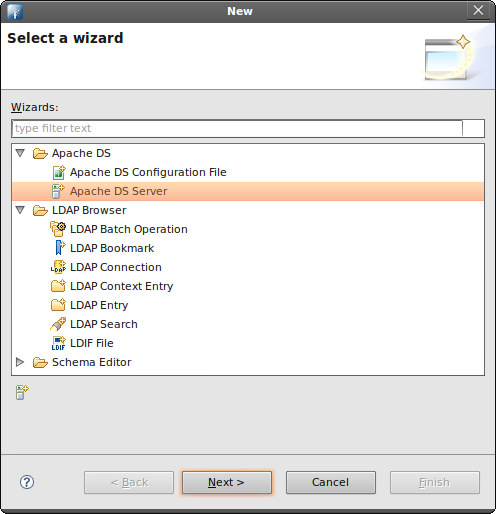 4. Expand the Apache DS folder, and select the Apache DS Server