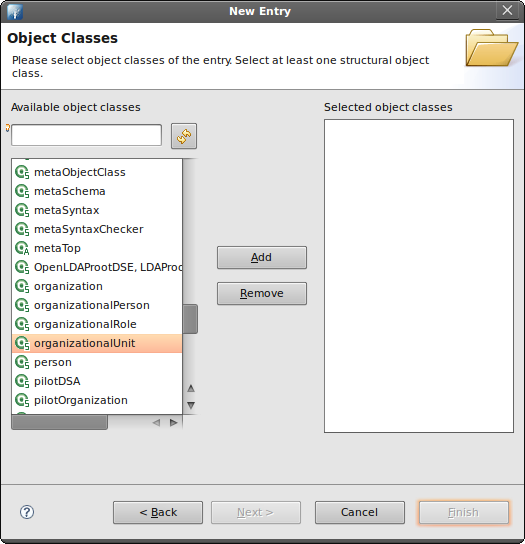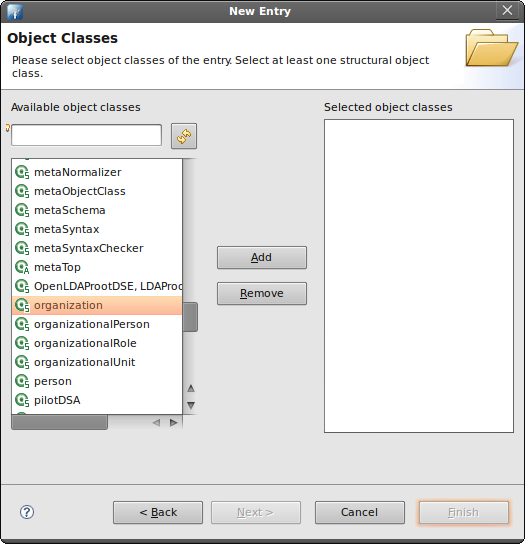 4. Select Create entry from scratch. Click Next. The Object Classes window will appear.