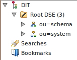 7. Expand the Root DSE folder. There are two sub-entries: ou=schema and ou=system.