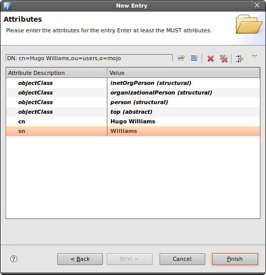 8. Under the sn attribute, enter Williams (sn stands for Surname)
