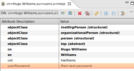 An inetOrgPerson can contain a user id (uid) and password (userPassword) which will be useful later for authenticating users from using LDAP.