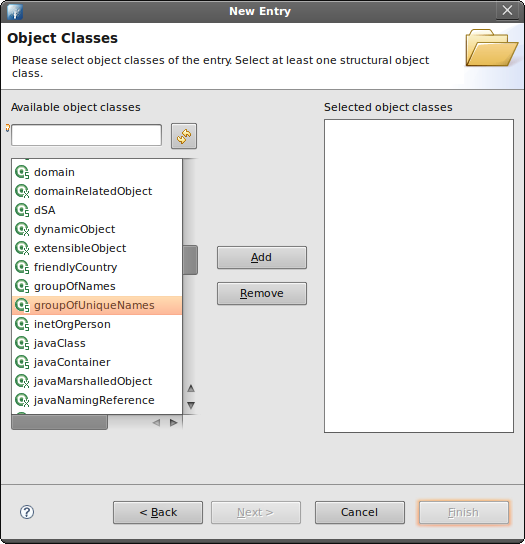 3. Select Create entry from scratch. Click Next. The Object Classes window will appear.