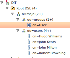 Let's start with the ou=users. We'll be adding four persons. We'll represent each person using the inetOrgPerson object.