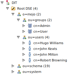Notice the topmost entry of this server is DIT, followed by the Root DSE.