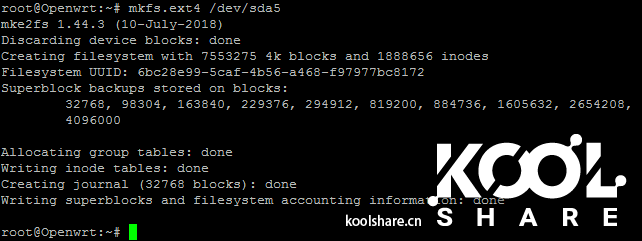 格式化分区(命令)mkfs.ext4 /dev/sda5
