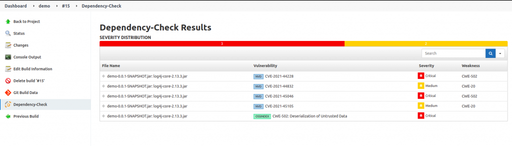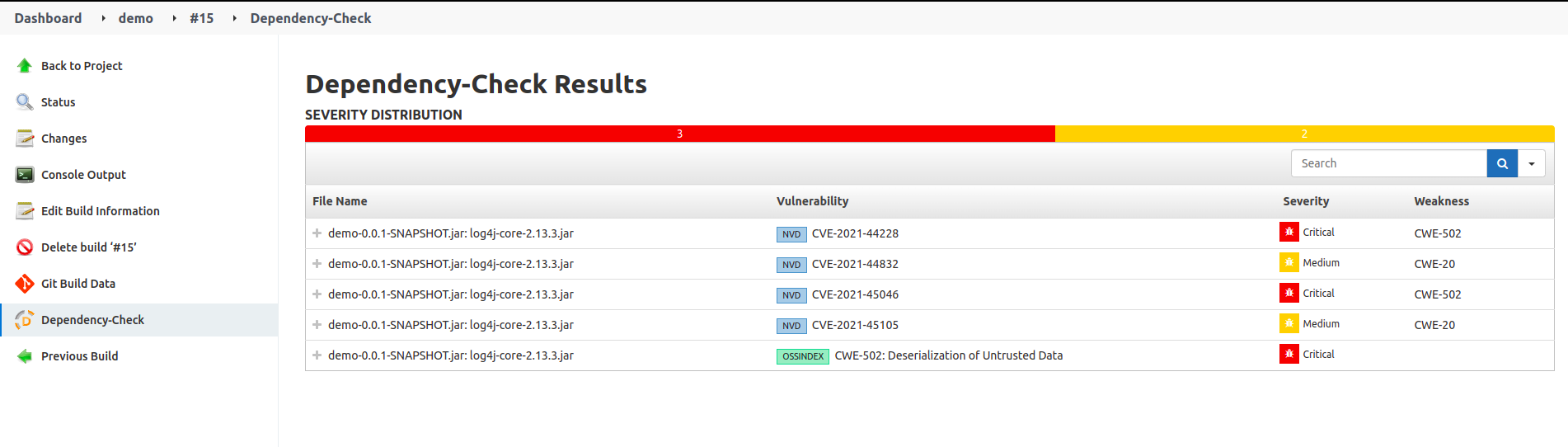 以下是有漏洞的报告,也可以设置超过多少,自动Fail构建程序。