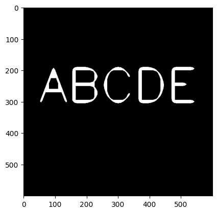 kernel = np.ones((5,5),np.uint8) open_img = cv2.morphologyEx(noise_img, cv2.MORPH_OPEN, kernel) plt.imshow(open_img, cmap='gray')