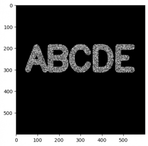 black_noise = np.random.randint(low=0,high=2,size=(600,600)) black_noise= black_noise * -255 noise_img = black_noise + img noise_img[noise_img==-255] = 0