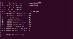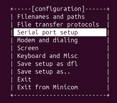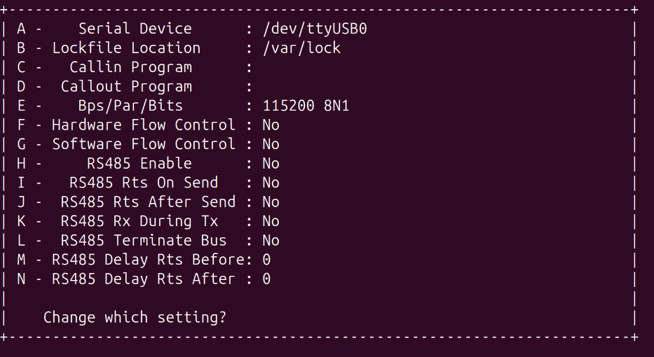 主要是第一个,修改后回车返回,然后选“Save setup as dfl”保存默认,后“Exit”,下次在进来默认就是串口连接了,下次直接登录,如下: